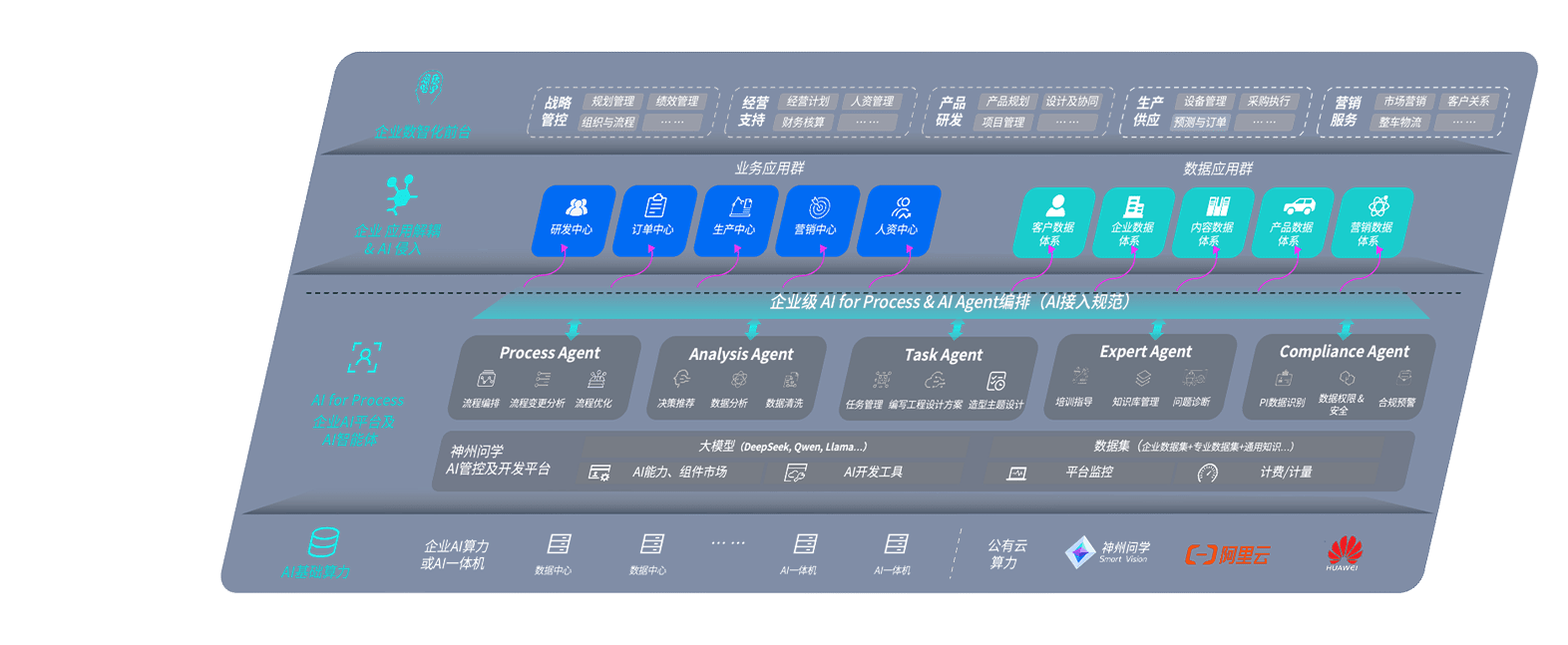 端到端的一站式AI工作空间深度融合了从企业战略规划到日常经营的全流程业务板块,,定向解决车企内部领域多、、、、部门多、、链条长、、场景碎片化等难题,,支持车企快速构建以AI为核心的生产力写作体系,,,,实现任务执行与AI能力的无缝集成与交互